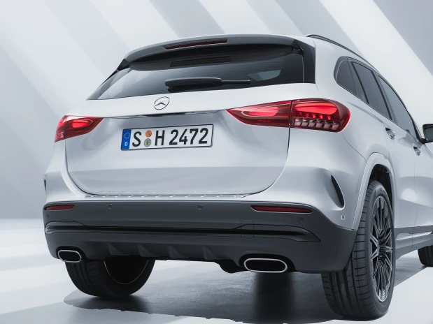 Новиот GLA импресионира на прв поглед со својот подобрен преден дизајн со дијамантска решетка на ладилникот со хромирани иглички и MULTIBEAM LED предни светла[1] кои ја рефлектираат неговата ексклузивна природа, додека панорамскиот лизгачки покрив[1] и 20-инчните алуминиумски фелни[1] создаваат уникатно доживување при возењето. Динамичната елеганција зрачи од новиот дизајн на задниот дел со карактеристични задни издувни цевки и целосни LED задни светла. Новиот финиш на боја во екстравагантно спектрално сино го комплетира префинетиот дизајн[1].