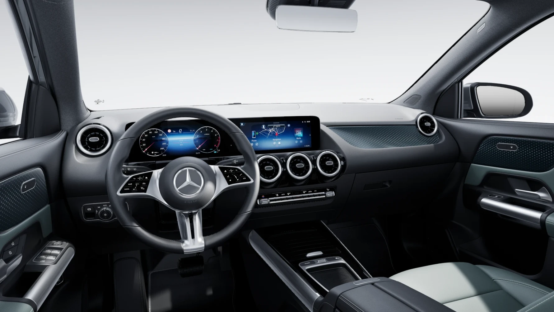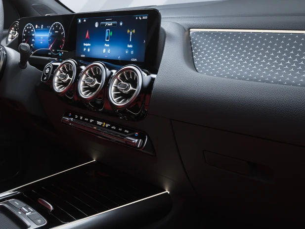 Внатрешноста на Mercedes-Benz GLA импресионира со својот висококвалитетен финиш, дарежливото чувство за простор и иновативната удобност при возењето. Упраувувачот, редизајнираната централна конзола и стилското амбиентално осветлување1], секој мал детаљ има импресивен естетски дизајн и внимателно осмислена функционалност. Новиот мултимедијален систем MBUX се приспособува на вашите желби, додека новиот Burmester® звучен систем со Dolby Atmos®[1] ветува интензивно звучно искуство.