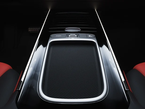 Капакот за складирање во централната конзола што се извлекува ви нуди елегантна заштита од љубопитни очи од висококвалитетен материјал. Изгледа добро, внатрешноста е уредна, а сè што е важно е при рака. Практичната преграда за складирање може да содржи типични секојдневни предмети какви што се паметен телефон, паричник или разни клучеви.