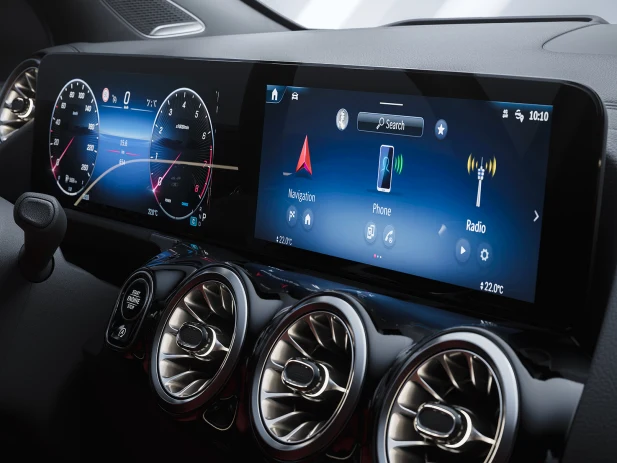 Мултимедијалниот систем MBUX ви нуди максимална слобода да контролирате многубројни функции на начин што е најудобен за вас. Достапен е екран на допир во вашиот Mercedes-Benz GLA. Екраните може да се контролираат и со помош на копчињата за контрола на допир на управувачот.
