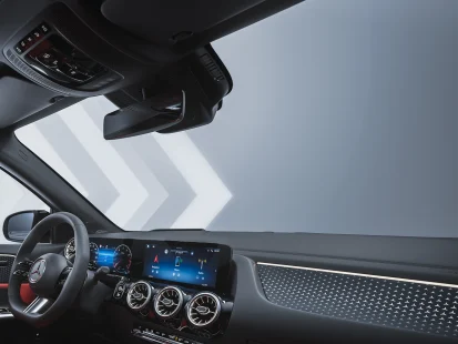 Дизајнирајте ги вашите лични барања за инфо-забава со новиот мултимедијален систем MBUX. Изберете помеѓу неколку стилови на приказ од „суптилно“ до „спортско“ и одлучете помеѓу гласовна команда или работење на допир. Вештачката интелигенција ја памети вашата омилена радиостаница и најбрзата патека до работа.