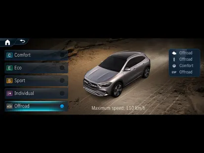 Направете го вашето возило погодно за тежок терен: дополнителниот режим на возење надвор од патот[1] го оптимизира влечењето, на пример, над снег, кашест снег или мека почва. За таа цел, ја приспособува испораката на моќност на моторот и ABS-контролата за малку погруби неасфалтни површини.