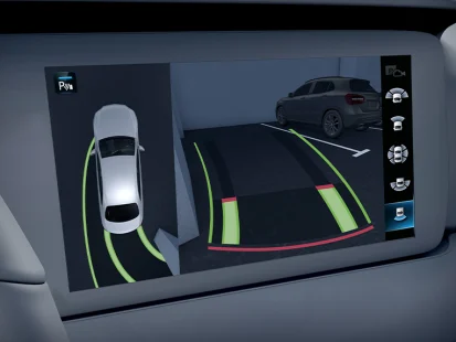 Оптимална услуга за паркирање: Активната помош за паркирање со камера од 360°[1][3] ви помага кога барате паркинг-простор, како и кога влегувате и излегувате од паркинг-простор.
