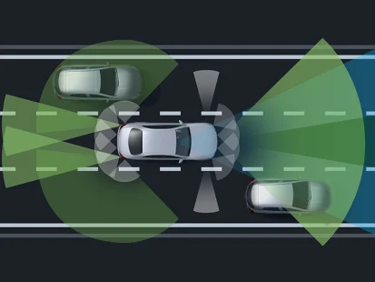 Активниот асистент за сопирање со функција за вртење, може да помогне да се избегнат судири со возила во движење или кои стојат пред вас, со сообраќај од спротивната страна кога се врти и со пешаци во движење, како и со велосипедисти. Покрај предупредувањата за растојание и судир, системот првенствено нуди помош за сопирање соодветно на ситуацијата, вклучувајќи и итно запирање доколку е неопходно.[2]