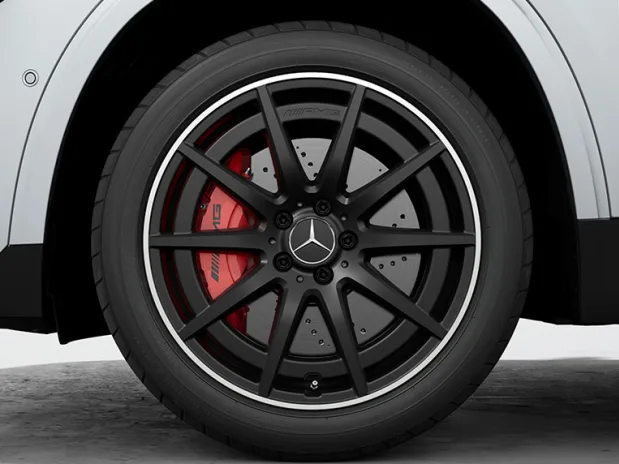 Црвените диск сопирачки[1] со црни „AMG“ букви, привлекуваат внимание и ги истакнуваат перформансите на вашиот систем за сопирање.