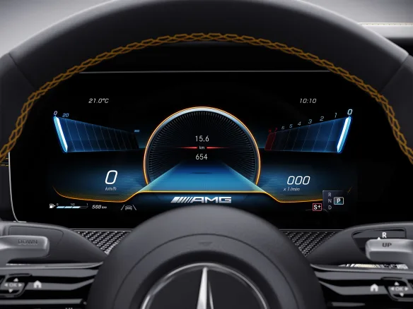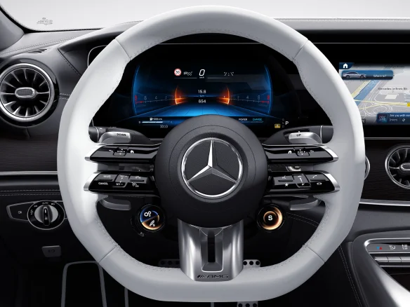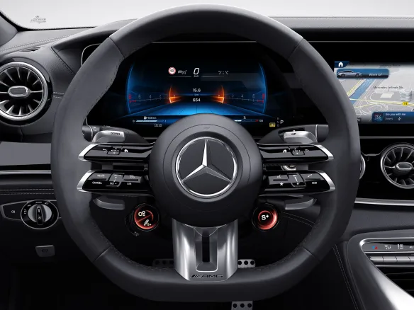 Карактеристичната AMG зарамнета форма е усвоена од мотоспортот и го нагласува спортскиот карактер на пилотската кабина. Ергономски позиционираните контролни панели на допир, обезбедуваат интуитивна прифатливост за корисникот и промовираат фокусирано возење.