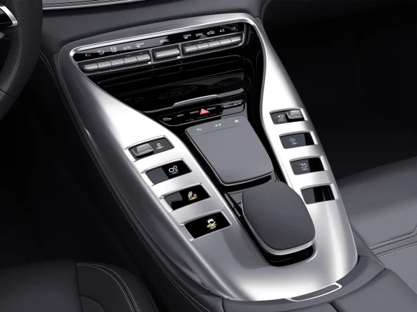 Уникатно: осум копчиња на приказот интегрирани во централната конзола и елемент на прекинувач во оперативниот панел. Дополнително, може да се контролираат менувачот, суспензијата, ESP®, издувниот систем, старт-стоп функцијата, контролата на јачината на звукот и задната аерофолија. Копчињата за звук може да се користат за приспособување на звучното искуство типично за AMG. Централната конзола е координирана со класичниот AMG-дизајн и е централно поставена. Нејзината големина и форма се совршени за безбедно и лесно складирање лични предмети при секое патување: од мобилни телефони до кабли за полнење.