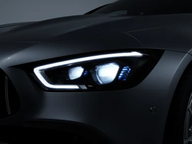 Тенките MULTIBEAM LED предни светла, двете куполи на хаубата и решетката на ладилникот специфична за AMG, непогрешливо зборуваат спортски јазик.