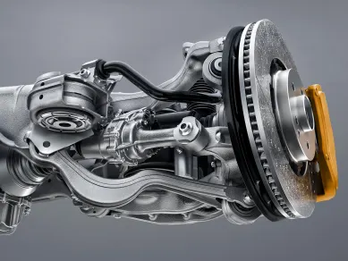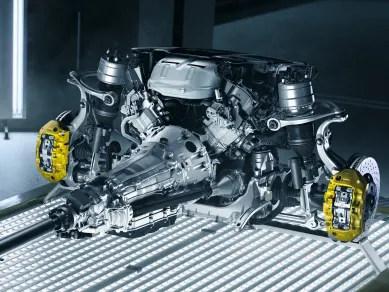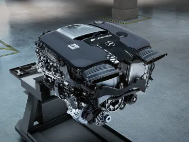 Динамичните AMG-држачи за моторот го решаваат конфликтот на цели помеѓу монтажата на моторот што е максимално мека за висока удобност и онаа што е цврста за супериорна динамика на возење. Функцијата за откривање ситуации во возењето, постојано ги поставува оптималните вредности на амортизација и здрвеност. Како резултат на тоа, моторот е секогаш поврзан со каросеријата со цврстина што е соодветна на ситуацијата.[d]
